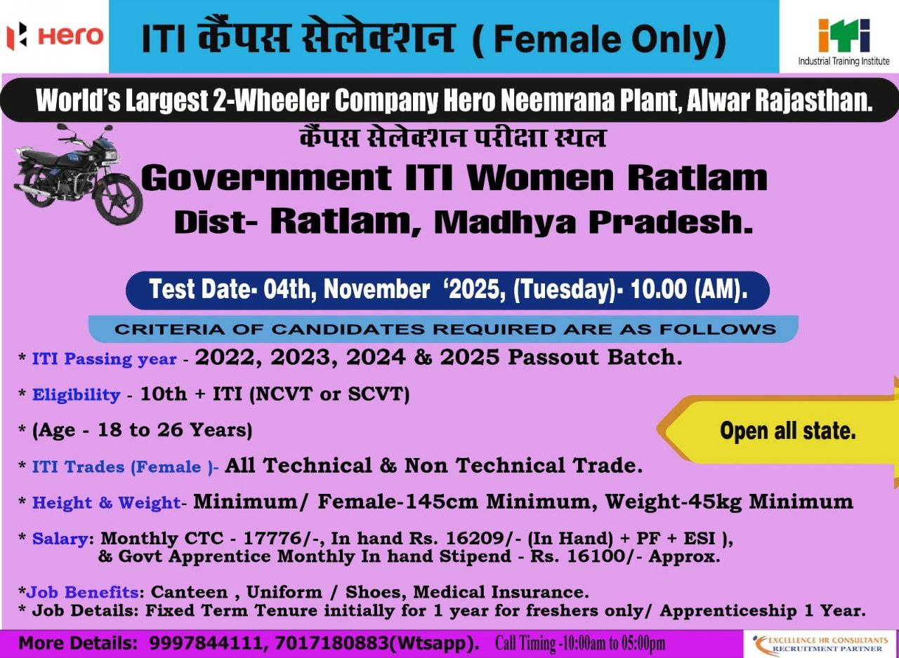 Hero MotoCorp Bharti 2025 | ITI Jobs | ITI Jobs In Hero MotoCorp | Fresher