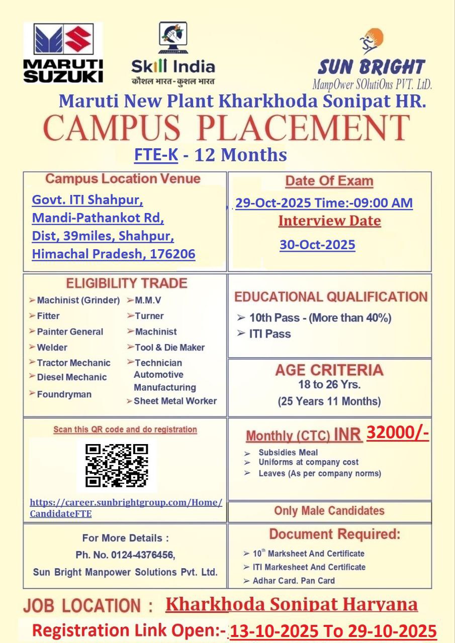 Maruti Suzuki FTE Recruitment 2025 | ITI Jobs | Fix Term Employ | Maruti Suzuki Career | FTE Maruti Suzuki | Jobs In FTE Maruti Suzuki | Apply Online