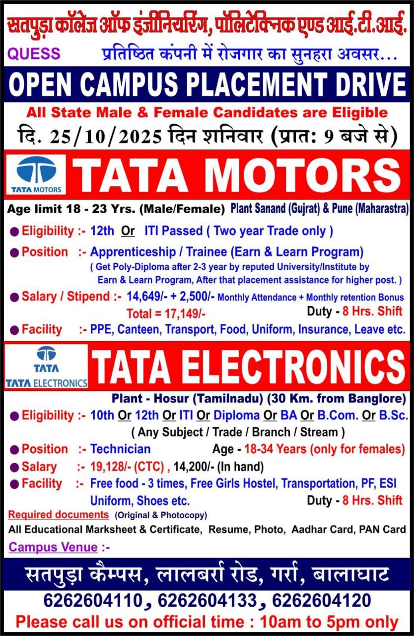 Campus Venue: рд╕рддрдкреБреЬрд╛ рдХреЙрд▓реЗрдЬ рдСрдл рдЗрдВрдЬреАрдирд┐рдпрд░рд┐рдВрдЧ рд╕рддрдкреБреЬрд╛ рдХреЕрдореНрдкрд╕, рд▓рд▓рдмрд░реНрд░рд╛ рд░реЛрдб, рдЧрд░реНрд░рд╛, рдмрд╛рд▓рд╛рдШрд╛рдЯ